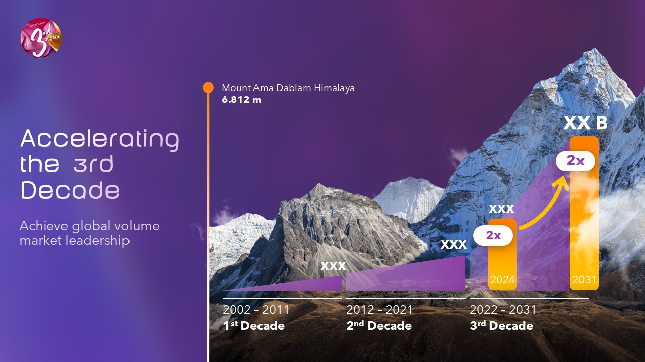Unser Team übernahm die Gestaltung und Animation der Hauptpräsentation im 14:5-Format, ergänzt durch zwei Seitenflügel im 1:1-Format für ein immersives Bühnenerlebnis. Zusätzlich entwickelten wir eine maßgeschneiderte PowerPoint-Vorlage, die den Präsentierenden eine klare und konsistente Struktur für ihre Inhalte bot.